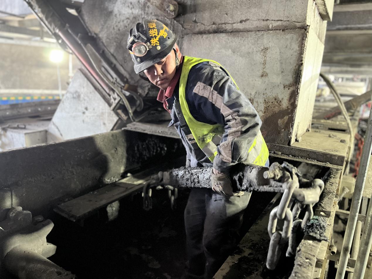 ▲机修工正在更换刮板机刮板